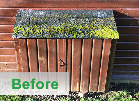 The roof on this shed was covered in moss, a spray of Greenclear and look at the results after just 48hrs