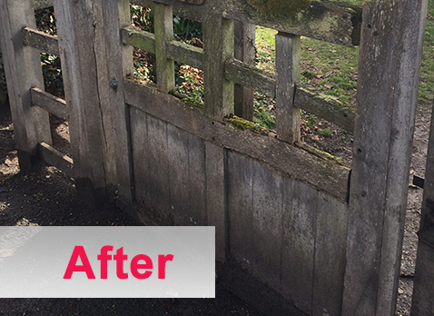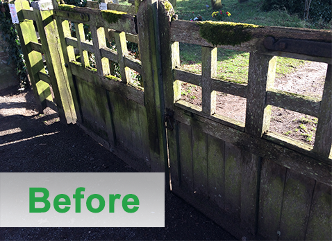 This gate was green with algae, a spray of Greenclear and look at the results after just 48hrs