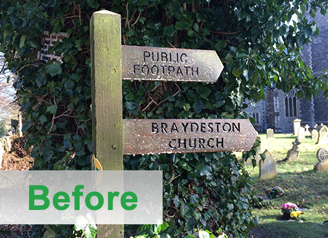 This sign was covered with algae and mould, a spray of Greenclear and look at the results after just 48hrs